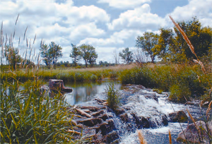 President Franklin D. Roosevelt’s New Deal helped to create projects on the site which, in turn, created local jobs. The waterfall shown here was one of those projects. We happened to be visiting the monument several years ago on a picture perfect afternoon when I snapped this photo. A 1/2 mile nature trail has been created, highlighting the stunning rock formations, native prairie grasses and the falls known here as “Winneswissa”.