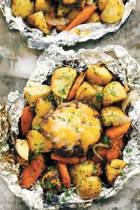 hamburger with a higher fat content for this. I place the potato and/or carrots on the foil first, then onion, the